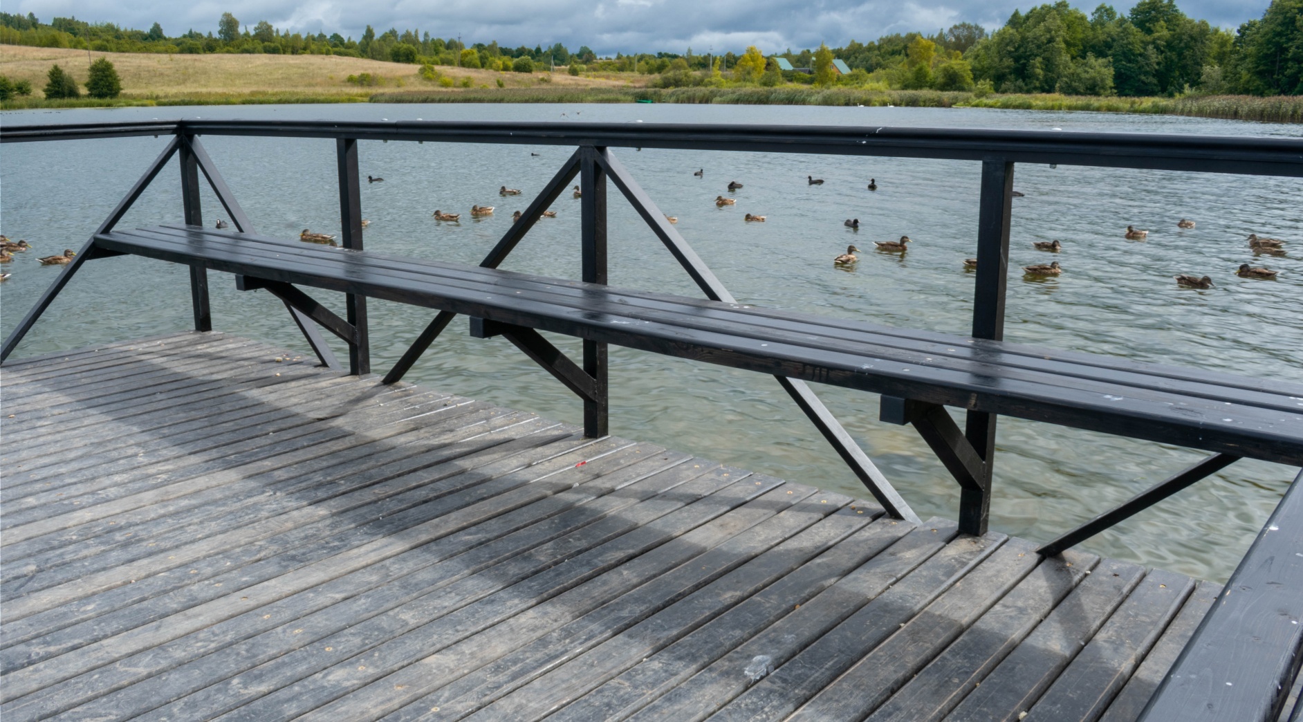 Причал также стал более удобным и функциональным. Сооружение оборудовано скамейками для отдыха и спуском в озеро со ступеньками, уходящими под воду.