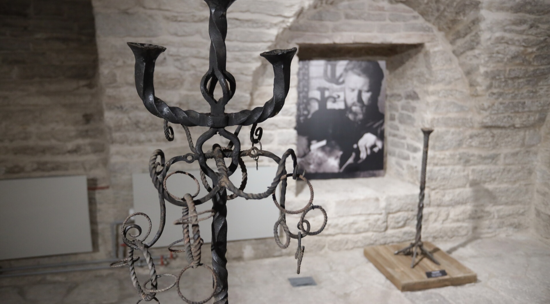 Также гости выставки смогут познакомиться с акварелями Всеволода Смирнова и, конечно, его коваными работами. Для их демонстрации сотрудники музея нашли удачное решение, водрузив кузнечные изделия на постаменты из деревянных досок. «Грубые деревянные постаменты в сочетании с работами горячей ковки производят очень правильное художественное впечатление. Особенно на фоне этого старого камня», - заметила Светлана Мельникова.