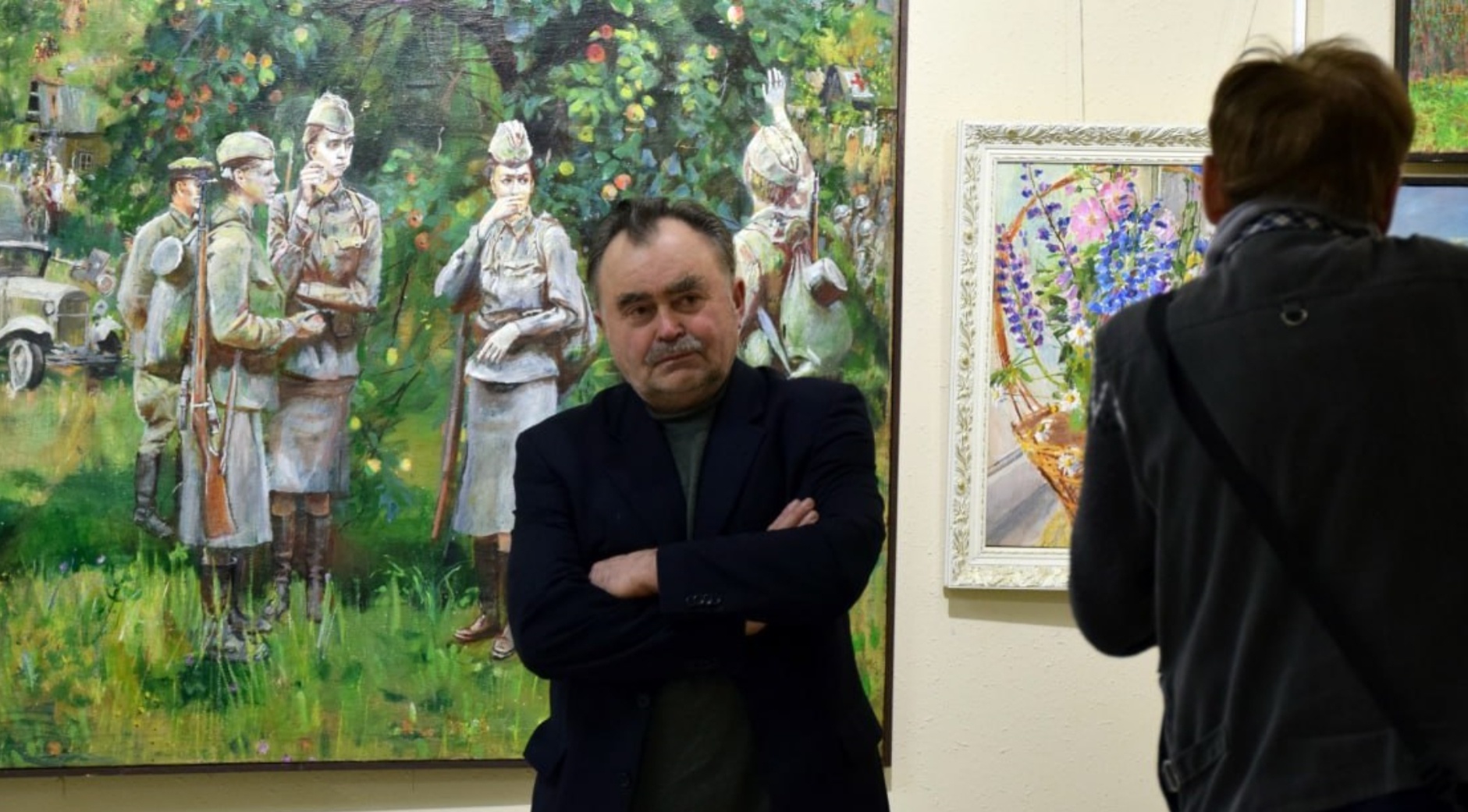 На выставку он возил и свою картину «Шестая рота», которую писал полтора года – нужно было найти фото каждого героя, видео и 86 портретов написать на холсте.