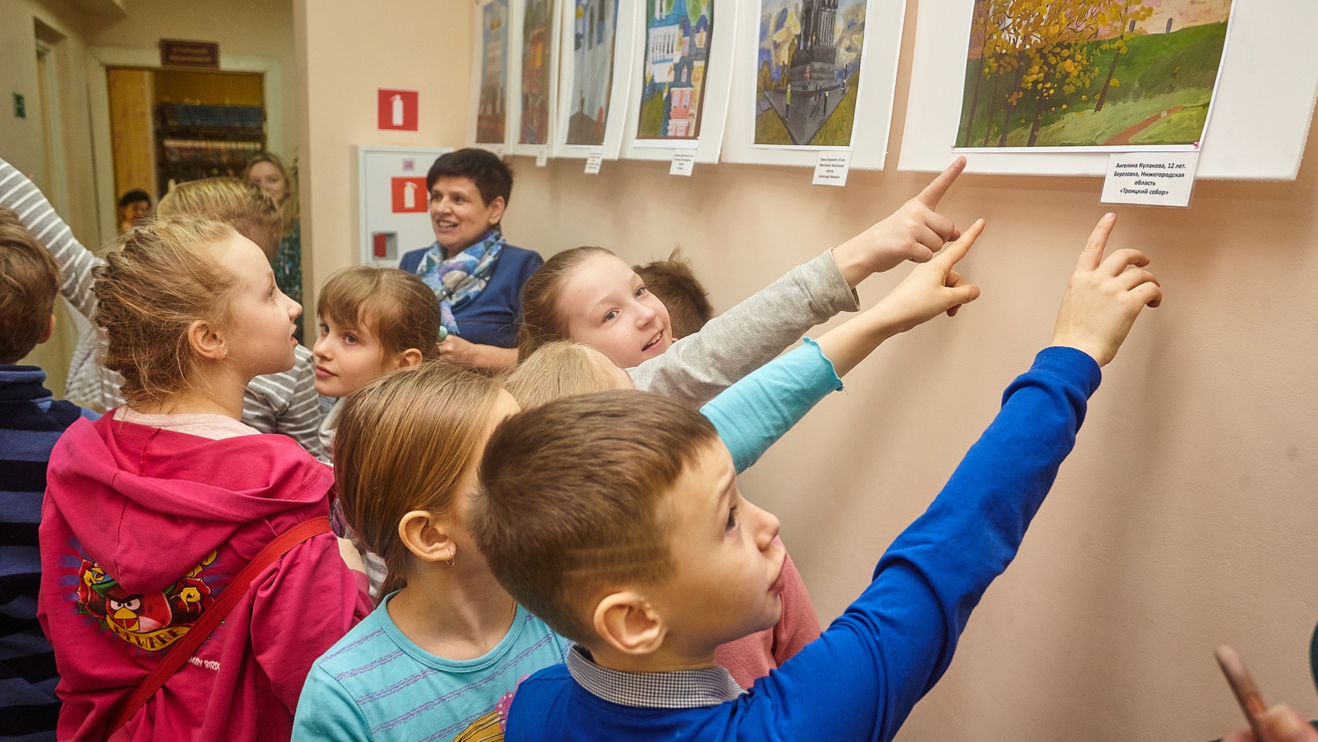 Первыми выставку участников конкурса «Все в Псков» увидели школьники.