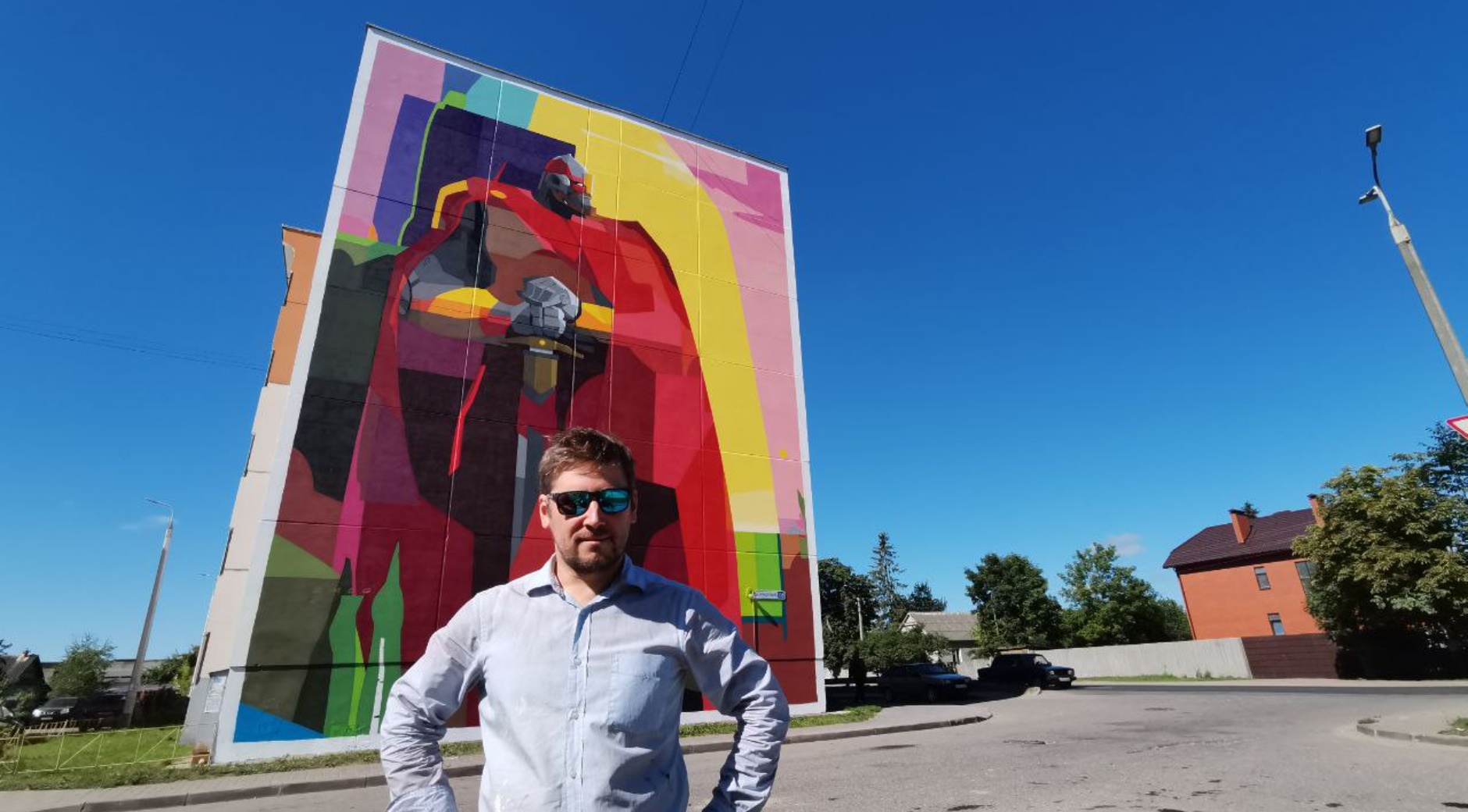 В подарок городу Костя оставил мурал - свое авторское изображение Александра Невского.