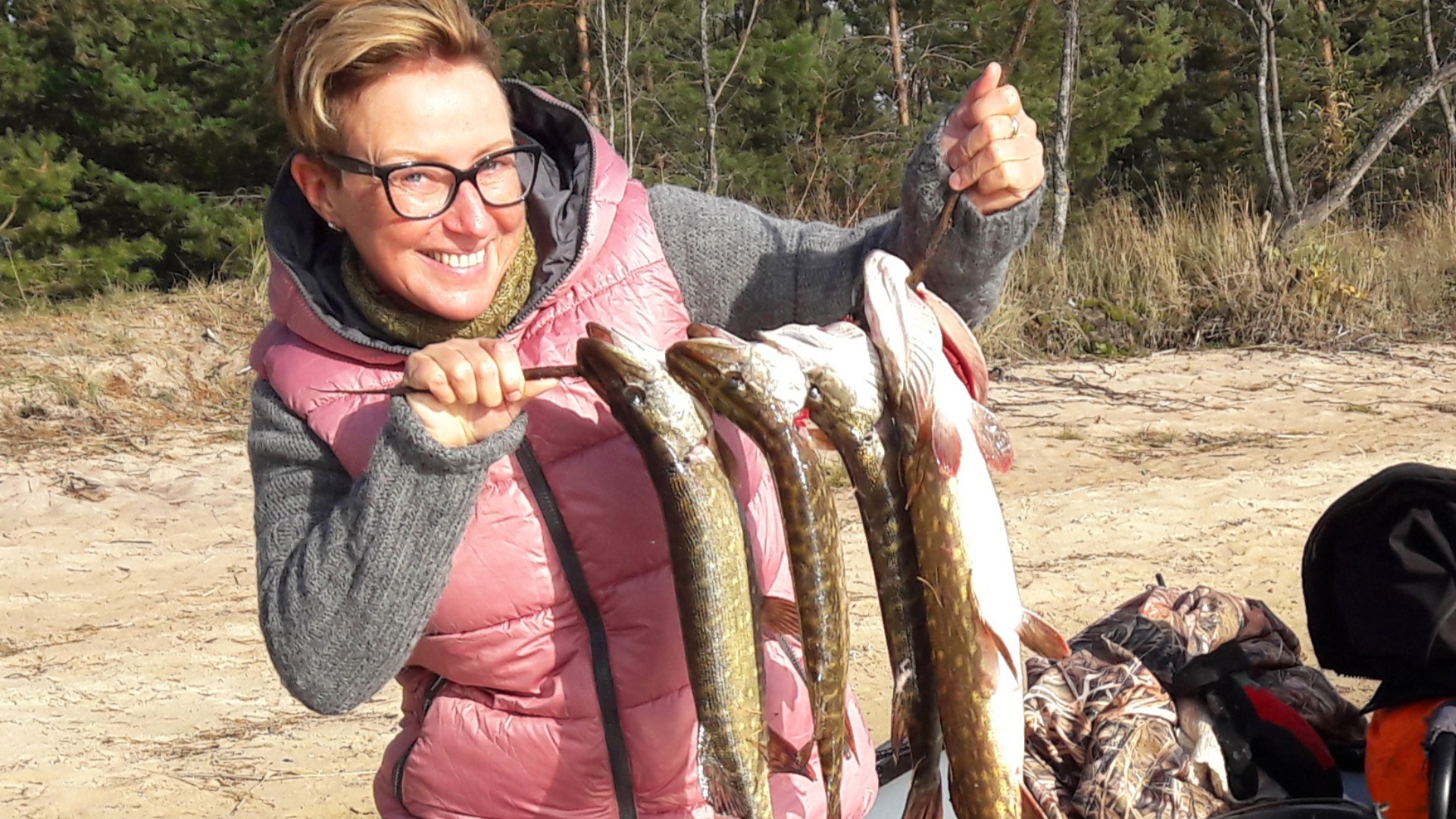 Своими планами Вениамин Борисович поделился и с нами. Поддержка от друзей-рыбаков была обещана и обязательно с приготовлением ухи на костре из свежей рыбы. Вот только погода в конце октября у нас, увы, совсем не курортная. Выбрать денек оказалось непросто, но к всеобщему удовлетворению таковой нашелся. Погода выдалась удивительная. До этого и после — и дождь, и ветер, а 25 октября — теплое осеннее окошко для греческой гостьи — небольшой ветерок и даже солнышко. По погоде выбрали и место для рыбалки — Раскопельский залив Чудского озера. Но утеплились мы все равно серьезно, и было это совсем не лишним, температура воды в заливе +7 градусов.