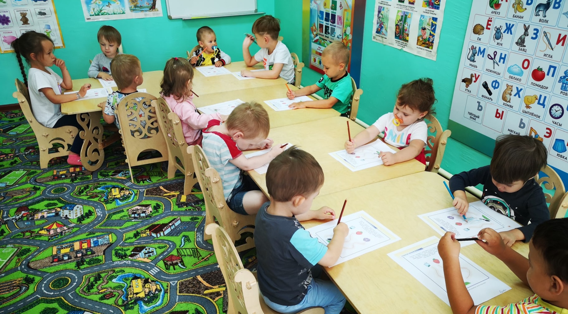 В детском центре с малышами проводят развивающие занятия