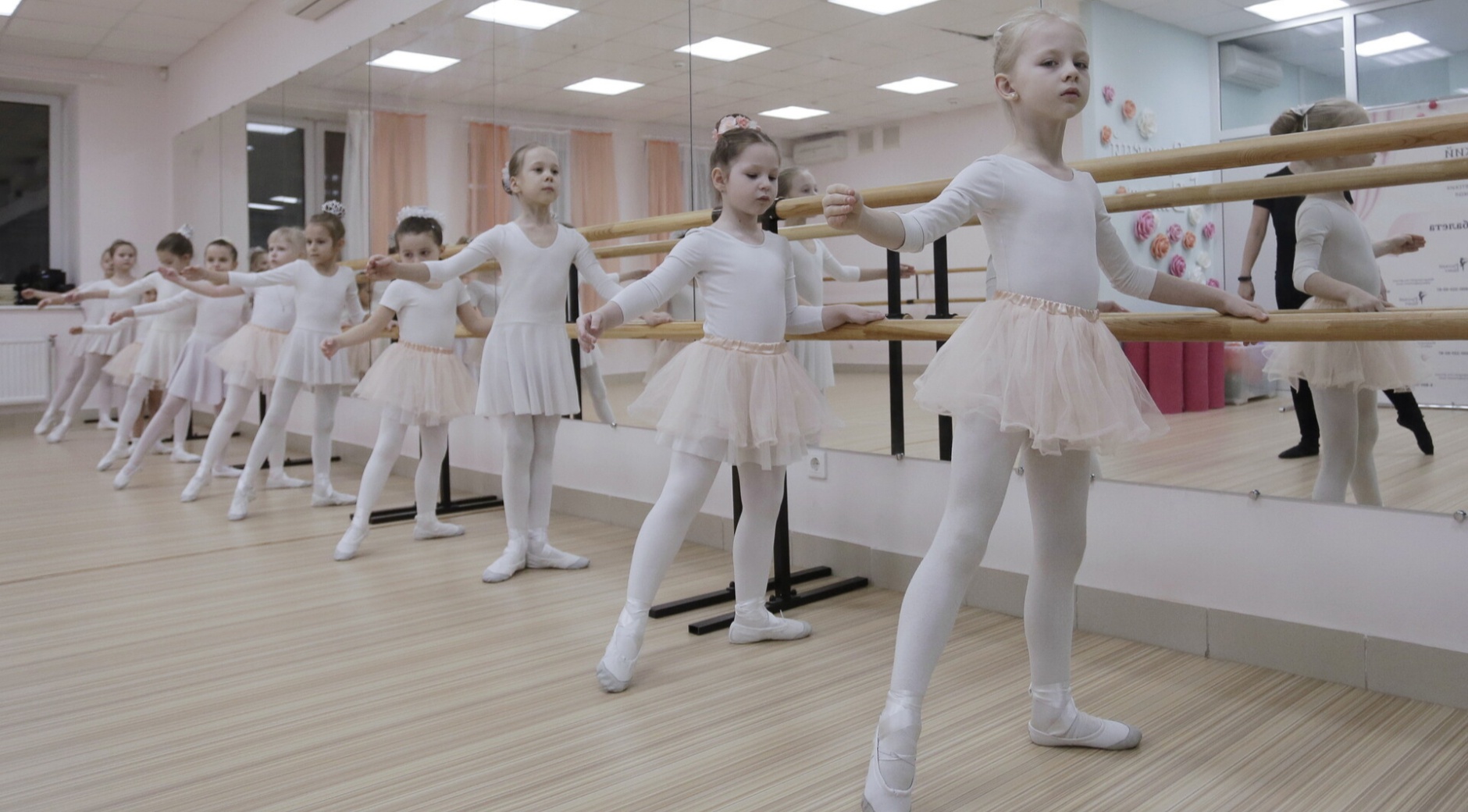 Оборудование в танцевальном классе соответствует всем требованиям балетной школы