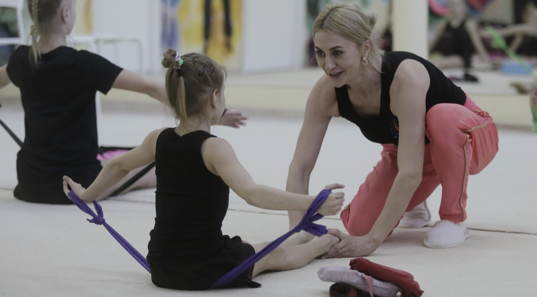 Зал, где размещается «Студия высоких достижений по художественной гимнастике», находится на территории бывшего предприятия на ул. Ижорского батальона в окружении старых знаний и разбитых дорог. Тем ощутимее контраст с тем, что находится внутри. Юные гимнастки занимаются в чистом теплом просторном зале с зеркалами и светлым ковровым покрытием. Малышки оставляют уличную обувь за дверью и с радостью бегут переодеваться. В студии, открытой в сентябре прошлого года псковичкой Ольгой Александровой, ежедневно проходят тренировки. Об идее открытия своего клуба и о планах по развитию проекта предприниматель рассказала «Псковской правде».