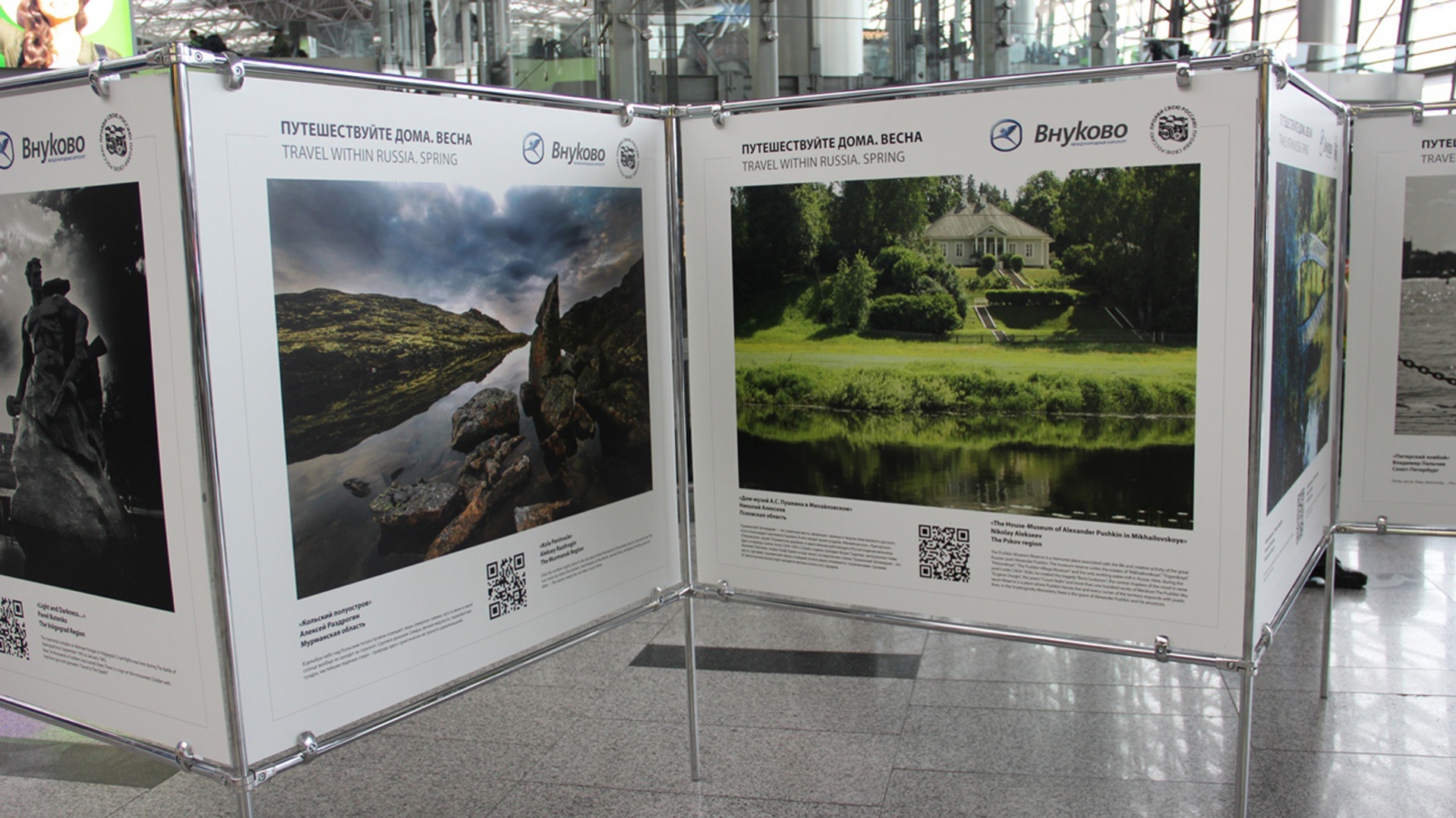 В рамках продвижения глобального туристического маршрута «Серебряное ожерелье России» Информационный туристский центр Псковской области совместно с порталом о событийном туризме организовал участие Псковской области в фотовыставке «Путешествуйте дома. Весна» в международном аэропорту Внуково в Москве.