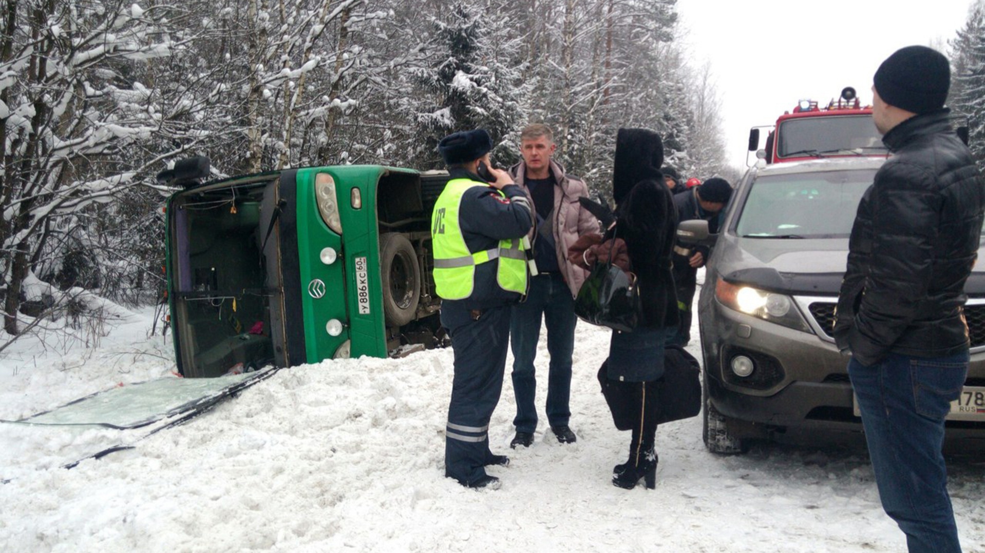 Татьяна Тихомирова, мама участницы коллектива Пришел на помощь маршрутный автобус «Меридиан». Водитель остановился, пассажиры, следовавшие в Питер, освободили свои места для пострадавших. После того как ребят доставили на ближайшую автозаправку, маршрутка продолжила свой путь. Врачи скорой помощи осматривали детей и взрослых уже на заправочной станции.
