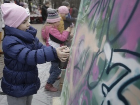 В Пскове в честь Дня народного единства у памятника княгине Ольге открылась арт-площадка, где прошел мастер-класс по рисованию баллончиками. Затем на несколько часов площадка стала местом свободного творчества. Горожане полностью закрасили 5 стендов , на которых заранее были размещены наклейки-трафареты с портретами великих личностей Псковской области: княгини Ольги, князя Александра Невского, князя Довмонта, Александра Пушкина и Василия Маргелова.