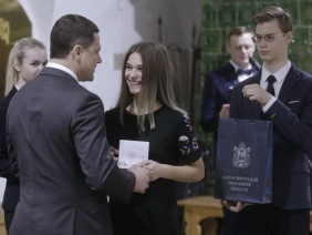 Торжественный приём в честь 25-летия Конституции РФ провёл губернатор Псковской области Михаил Ведерников. В его рамках глава региона вручил государственные награды выдающимся псковичам, а также первые паспорта 10 юным жителям области.