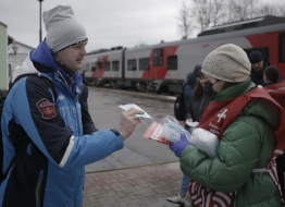 Добровольцы раздают маски и информационные листовки в рамках борьбы с распространением COVID-19.