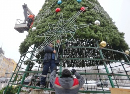 В Пскове разобрали главную городскую ёлку. Искусственное новогоднее дерево украшало центр города - Октябрьскую площадь - с 11 декабря прошлого года.