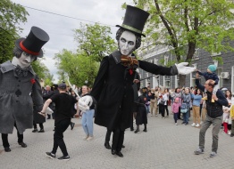 В Пскове Дни Пушкинской поэзии и русской культуры открылись представлением ВЕЛИКАНЦЕВ театра "КУКФО" и странствующих кукол господина Пэжо. Прошествовав на площадь Ленина в сопровождении сотен псковичей, необычные создания вместе с обычными людьми послушали, как бьют в барабаны шоу "DRUMTIME".
