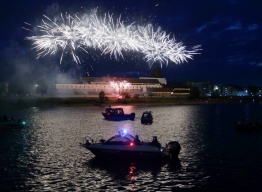 Семь минут длился фейерверк в честь Дня города в Пскове 23 июля. Его кульминацией стал трёхуровневый салют в цветах российского триколора.