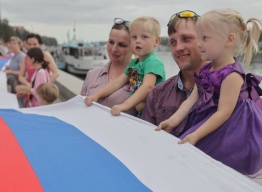 На набережной реки Великой 22 августа в 19:00 псковичи развернули полотнище флага России длиной 2105 метров.