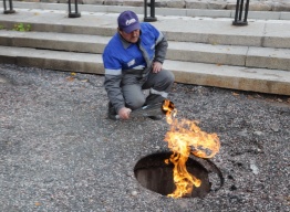 В Пскове состоялся перенос Вечного огня с Могилы Неизвестного солдата. Около двух недель он будет гореть в специальной палатке, а за это время специалисты отремонтируют газовую горелку у монумента и площадку вокруг неё.