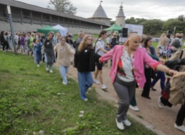 Акция «Хоровод дружбы», приуроченная к Дню российского флага, прошла в Пскове. Полторы тысячи ее участников взявшись за руки обошли хороводом по пешеходным дорожкам вокруг Псковского кремля.