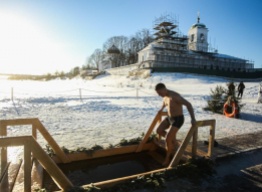 Накануне праздника Крещения Господня в Пскове по традиции устроили иордань на льду реки Великой, недалеко от стен Мирожского монастыря.