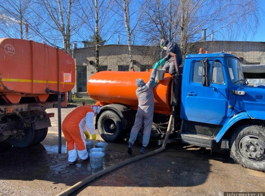 Улицы Пскова обрабатывают из специальных машин водным раствором хлора