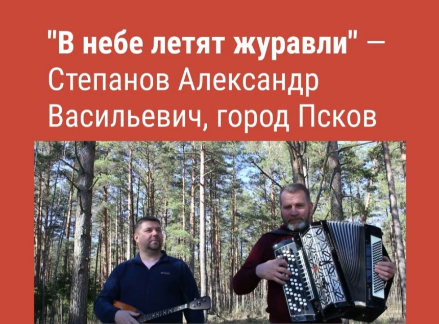 Художественный руководитель ансамбля «Сказ» Константин Абабков и баянист ансамбля Александр Степанов стали участниками онлайн-фестиваля «Спасибо за Победу!». Как сообщил «Псковской правде» Константин Абабков, на творческий конкурс фестиваля они отправили запись песни «В небе летят журавли».