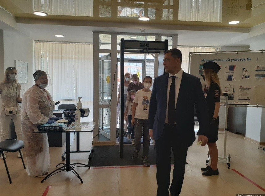 На участок губернатор приехал вместе со своей семьей.