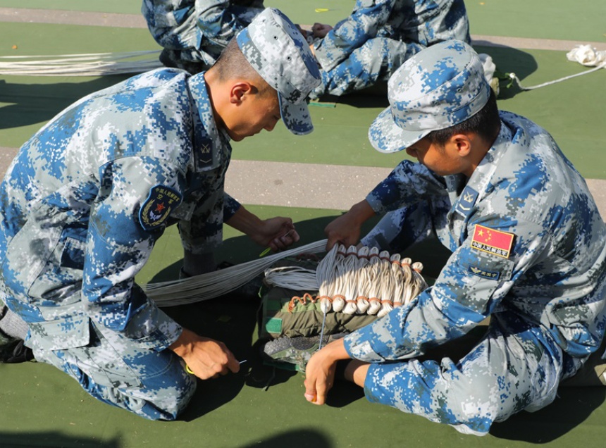 Команда из Китая укладывала парашюты SBS, которые они привезли с собой. Эти системы произведены в Китае и стоят на обеспечении Народно-освободительной армии Китая.