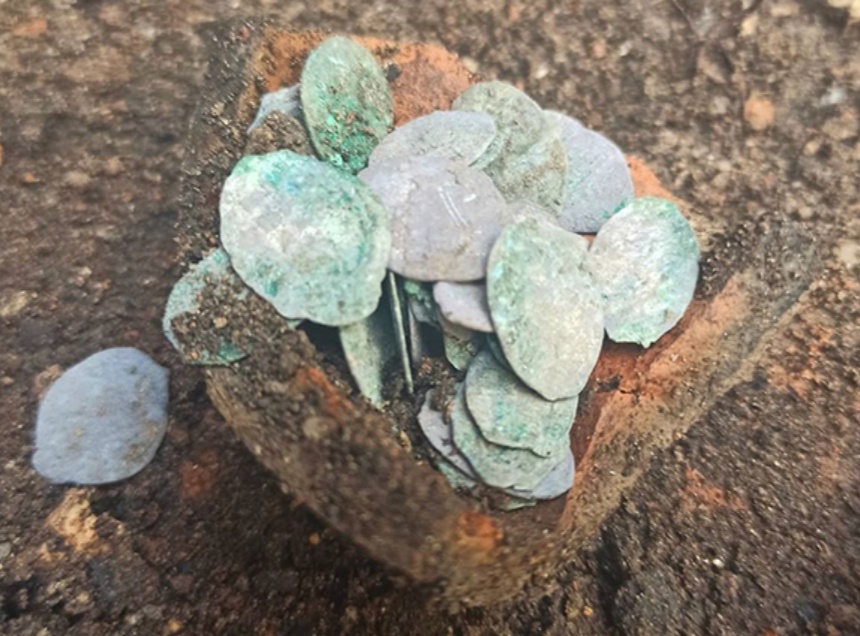 «Клад был обнаружен в кубышке, под полом деревянной постройки», - отметили археологи. Ранее этот участок уже раскапывали, чтобы проложить водопроводную трубу. «Рабочие разбили маленький керамический сосуд, но не заметили монет», - рассказали в археологическом центре. Специалисты считают обнаружение этого клада чудом.
