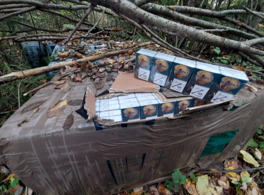 Сотрудники Пограничного управления обнаружили 42 коробки с табачной продукцией иностранного производства в лесу вблизи государственной границы в районе деревни Гавры Пыталовского района. Товар был подготовлен для транспортировки из Российской Федерации и замаскирован ветками.
