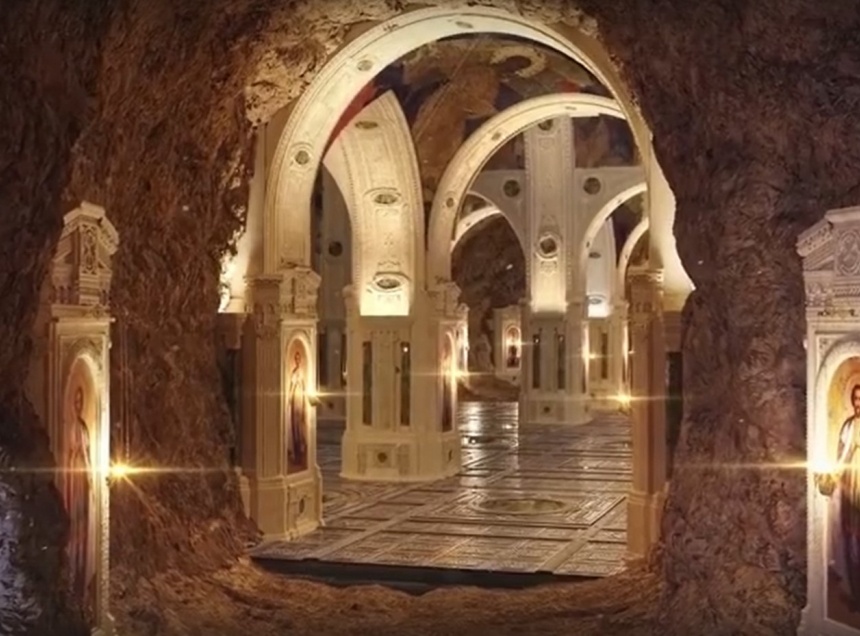 Митрополит Псковский и Порховский Тихон показал, каким будет новый подземный храм в Свято-Успенском Псково-Печерском монастыре. Видеосюжет об этом размещён на странице митрополита в социальной сети «ВКонтакте».
