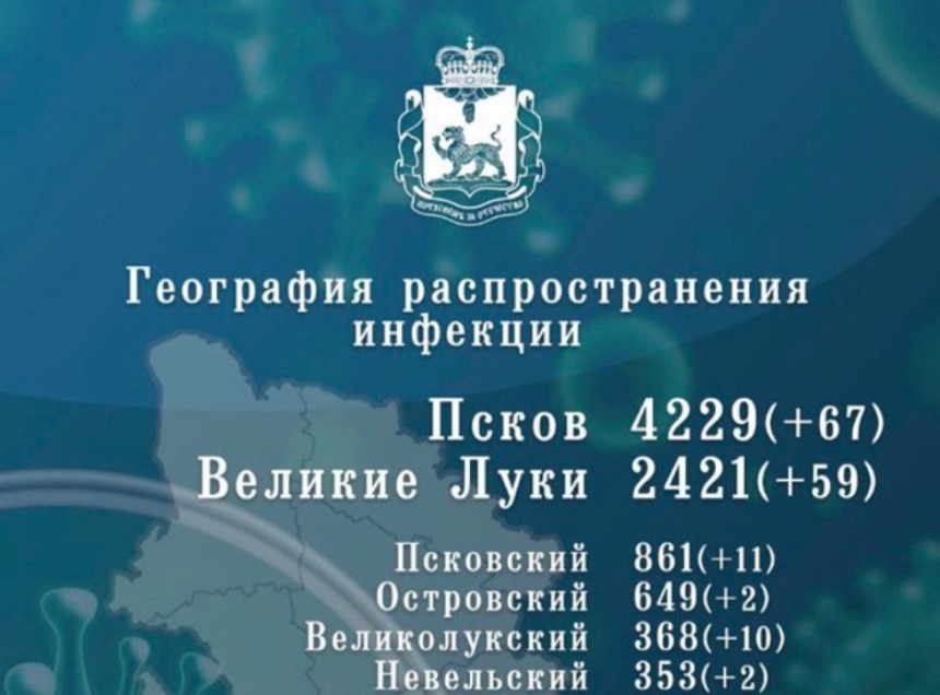 Больше всего заболевших выявили в Пскове – 67 человек (всего 4 тыс. 229) и в Великих Луках – 59 (всего 2 тыс. 421). У 11 человек диагностировали инфекцию в Псковском (всего 861) районе и 10 - в Великолукском (всего 368). В других муниципалитетах региона прибавилось менее 10 случаев заболевания.