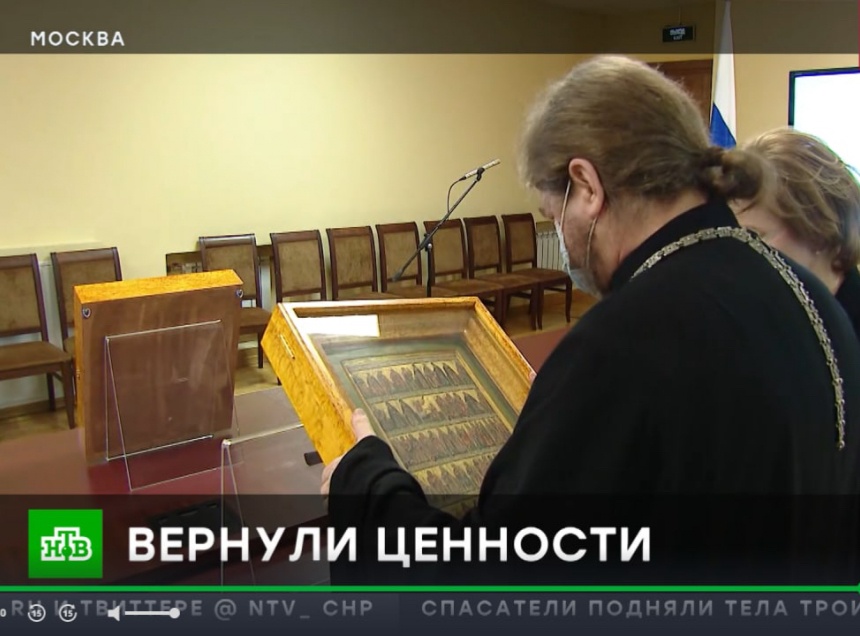 Иконы, которые немецко-фашистские захватчики вывезли в Германию в 40-х годах, нашлись в частной коллекции. Согласно проведенной экспертизе, полотна были написаны в Псковском монастыре в первой половине XVIII века, а вот киоты сделали современные российские мастера.