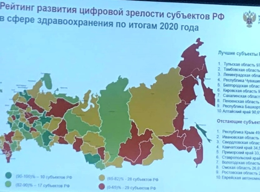 По итогам реализации в 2020 году федерального проекта «Создание единого цифрового контура в здравоохранении на основе единой государственной информационной системы в сфере здравоохранения (ЕГИСЗ)» составлен рейтинг цифровой зрелости субъектов РФ в сфере здравоохранения.