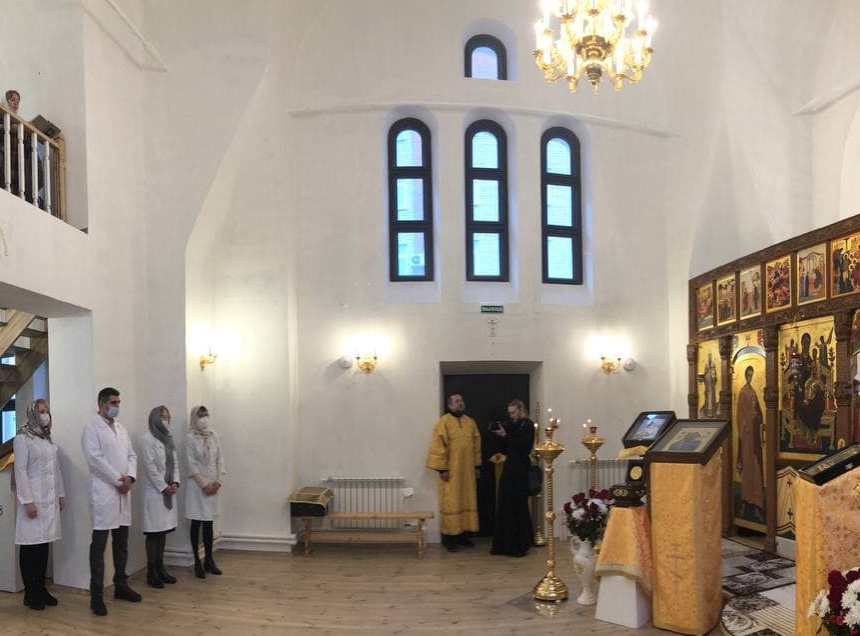 На сегодняшнем богослужении присутствовали медицинские работники, главный врач больницы Алексей Васильев, а также первый заместитель губернатора Псковской области Вера Емельянова, председатель регионального комитета по здравоохранению Марина Гаращенко.