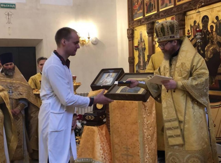 Церемонии награждения предшествовал чин освящения нового храма при больнице. Его провёл митрополит Тихон.