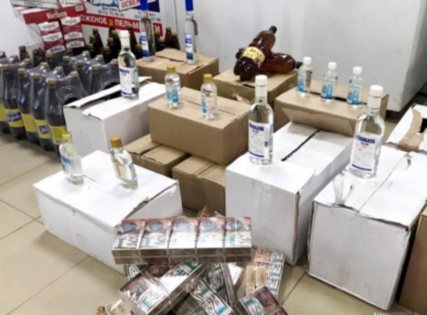 Из торговой точки были изъяты 1 тыс. 600 пачек сигарет без маркировки, предусмотренной российским законодательством и 200 литров алкогольной продукции без сопроводительных документов, удостоверяющих легальность ее производства и оборота. В том числе обнаружены 99 литров пива, 60 литров водки и 26,55 литра лосьона.