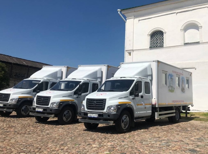 Митрополит Псковский и Порховский Тихон передал медикам Псковской области три лечебницы на колёсах. Как сообщает Псковское агентство информации, вручение состоялось 20 июня у Троицкого собора Псковского кремля.