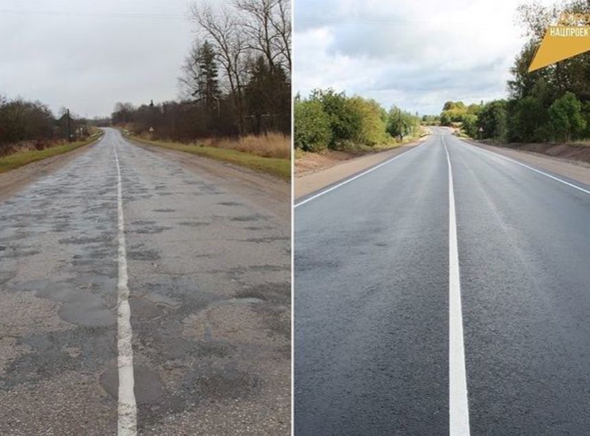 Участок дороги Остров – Новоржев, проходящий через деревни Шмойлы и Влазово, был отремонтирован в рамках национального проекта «Безопасные и качественные автомобильные дороги».