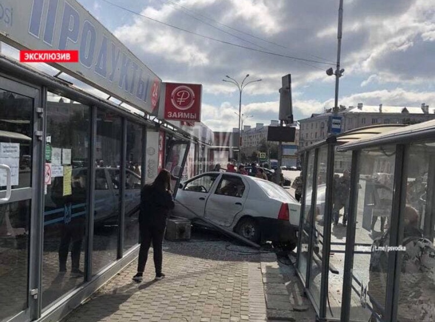 Авария произошла 18 сентября в 13.00 у Псковского кремля на площади Ленина, 1. По предварительной информации, в результате столкновения с другим транспортным средством, водитель автомобиля Renault Logan не справился с управлением и, выехав на встречную полосу, протаранил остановку общественного транспорта и торговый павильон.
