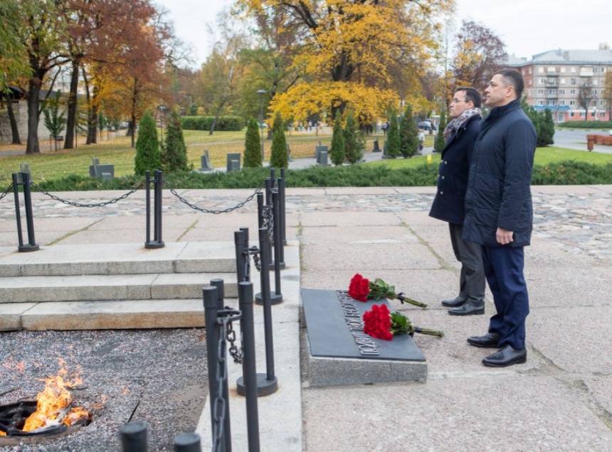 Вместе с губернатором Псковской области Михаилом Ведерниковым он возложил цветы к Могиле Неизвестного солдата в Пскове и минутой молчания почтил память погибших в годы Великой Отечественной войны.