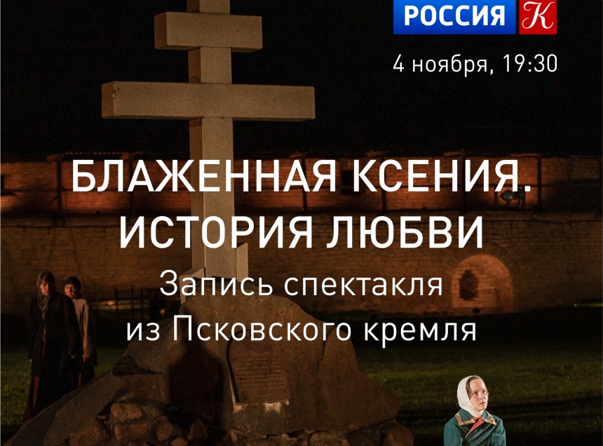 4 ноября в 19.30 на федеральном телеканале «Культура» покажут спектакль Александринского театра «Блаженная Ксения. История любви» из Псковского кремля. Об этом сообщает Псковское агентство информации со ссылкой на пресс-службу Псковского театра драмы. Запись спектакля велась 2 сентября.