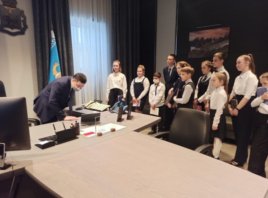 В процессе телефонного разговора ребята поинтересовались у сити-менеджера города о ходе строительства ФОКОТа у школы №20. Также в рамках встречи участники акции посетили кабинет главы региона и подписали несколько важных документов с помощью планшета.