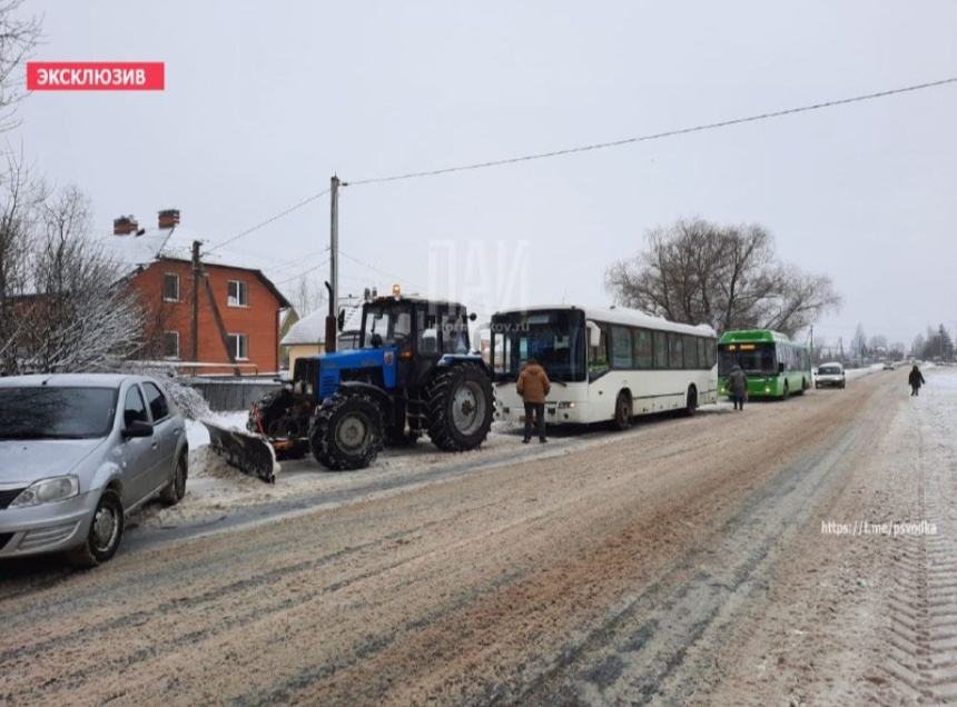 В Псковском районе водитель трактора врезался в городской автобус, следовавший по маршруту №124 «Неёлово – Ваулино». Об этом сообщает Телеграм-канал «Псковская сводка».