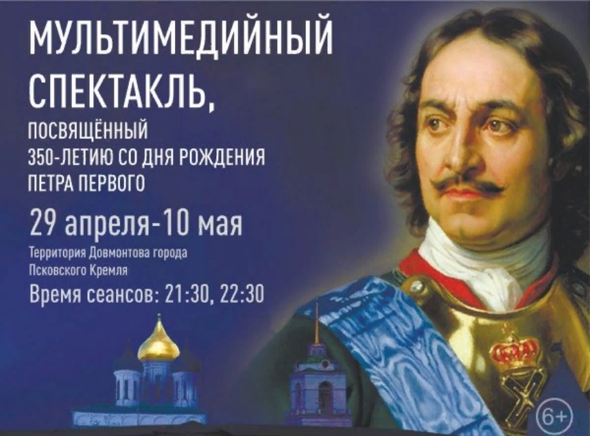 Мультимедийный спектакль, который приурочен к 350-летию со дня рождения Петра I, пройдет на территории Довмонтова города Псковского кремля с 29 апреля по 10 мая.