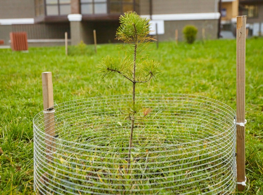 Подрядчик осуществит разбивку территорий для дальнейшей посадки саженцев, подготовит посадочные места и внесет в них универсальное удобрение. Далее специалисты посадят деревья и установят с помощью растяжек крепления деревьев к кольям.