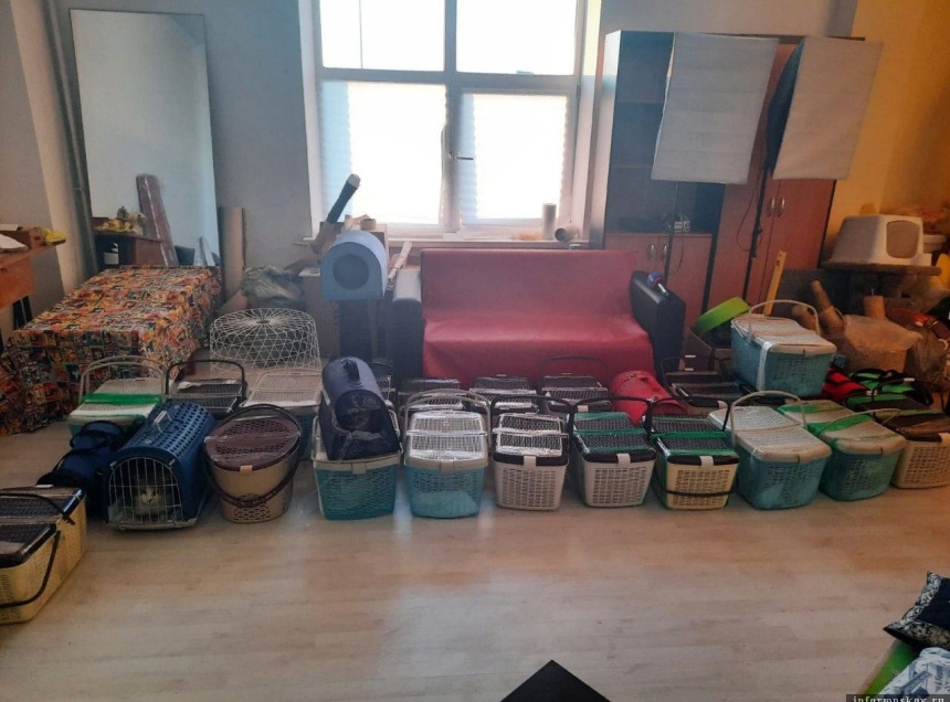 Хозяйка псковского приюта Ирина Шембурская арендует большое помещение для животных, в нём и разместили прибывших из Украины котов.