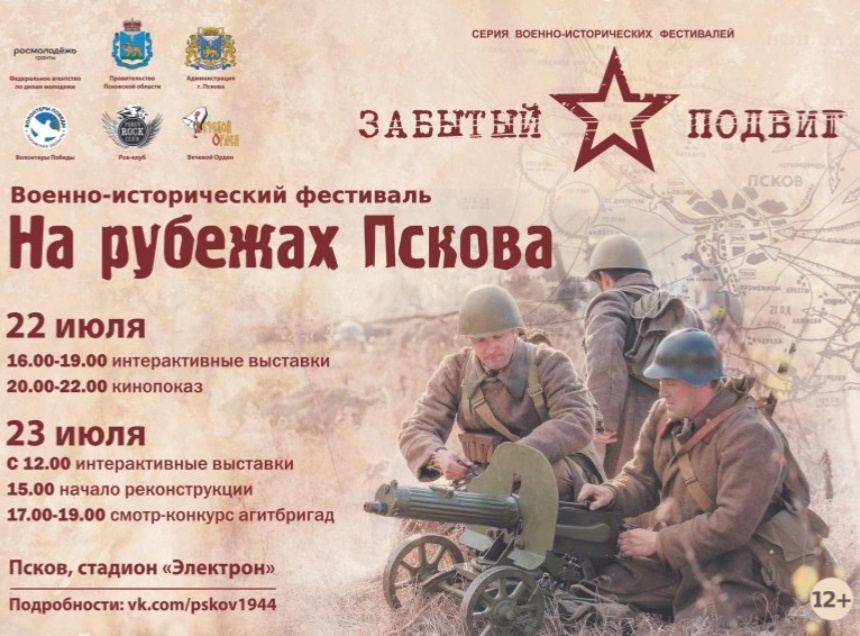 Военно-исторический фестиваль «На рубежах Пскова» проекта «Чтобы помнили. Второй фронт Пскова» пройдет на территории городского стадиона «Электрон» 22 и 23 июля. Центральные события запланированы в день освобождения города от немецко-фашистских захватчиков, сообщили «Псковской правде» в пресс-службе правительства Псковской области.