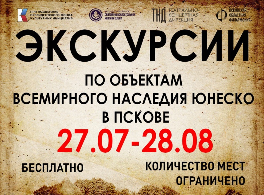 Бесплатные экскурсии по объектам Всемирного наследия ЮНЕСКО организуют в Пскове. Об этом Театрально-концертная дирекция Псковской области сообщила в своем Телеграм-канале.