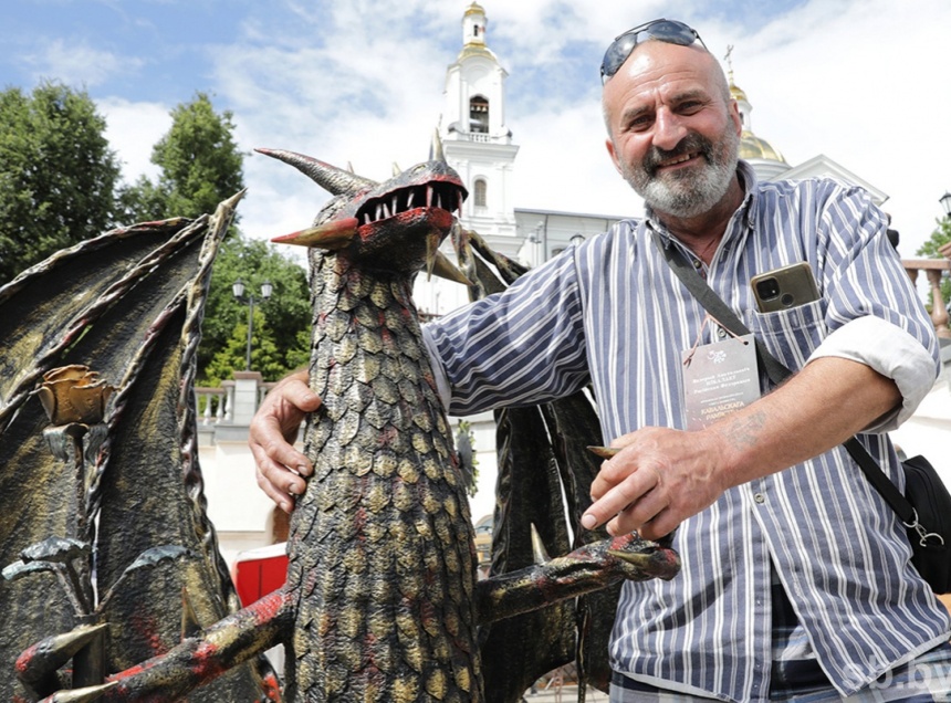 Журналисты издания поделились, что псковский мастер Валерий Николаев в Витебске побывал впервые. На «город мастеров», который был организован в рамках «Славянского базара», с собой он привез необычную декоративную композицию – железного трёхглавого дракона.