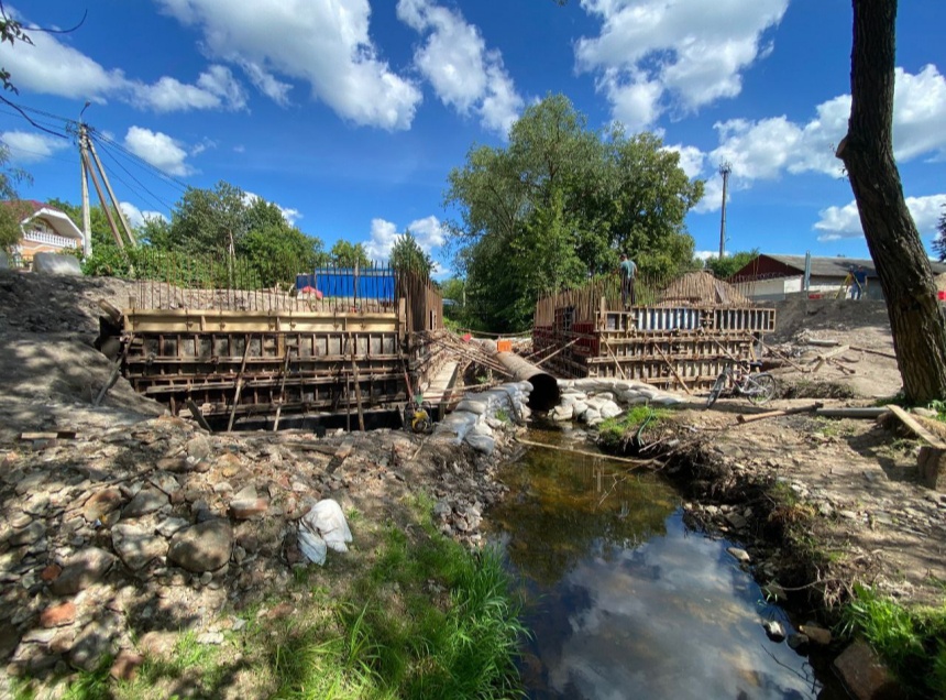 «Сейчас специалисты возводят опалубку для заливки монолитных опор моста. Всего их будет две. Пролетное строение будет выполнено из железобетонной плиты», – подчеркнул Борис Елкин.
