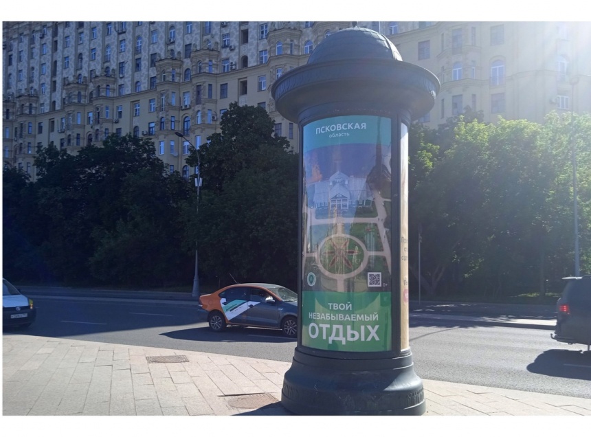 Так, по 19 московским адресам, в числе которых Ленинградское, Волоколамское и Дмитровское шоссе, улицы Автозаводская, Ходынская и Сущёвский Вал и другие, был размещен 21 цифровой билборд. Реклама о поездках в Псковскую область транслировалась на них на протяжении всего июля. Кроме того, на Берниковской и Смоленской набережных разместили две информационные тумбы, а на 12 городских киосках появились информационные макеты.