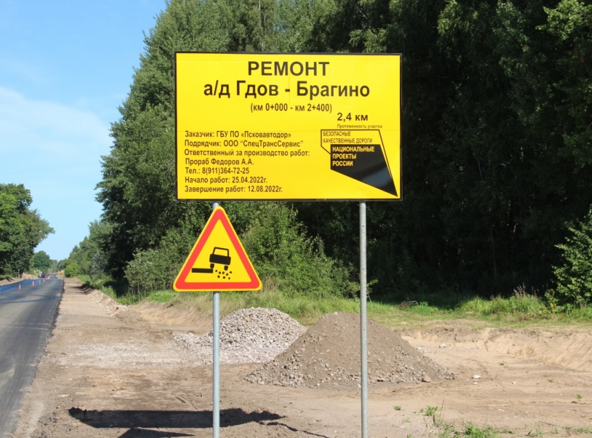 На ремонт автомобильной дороги «Гдов – Брагино» было выделено порядка 50 млн рублей. Работы выполняет подрядная организация ООО «СпецТрансСервис» по контракту с ГБУ ПО «Псковавтодор».